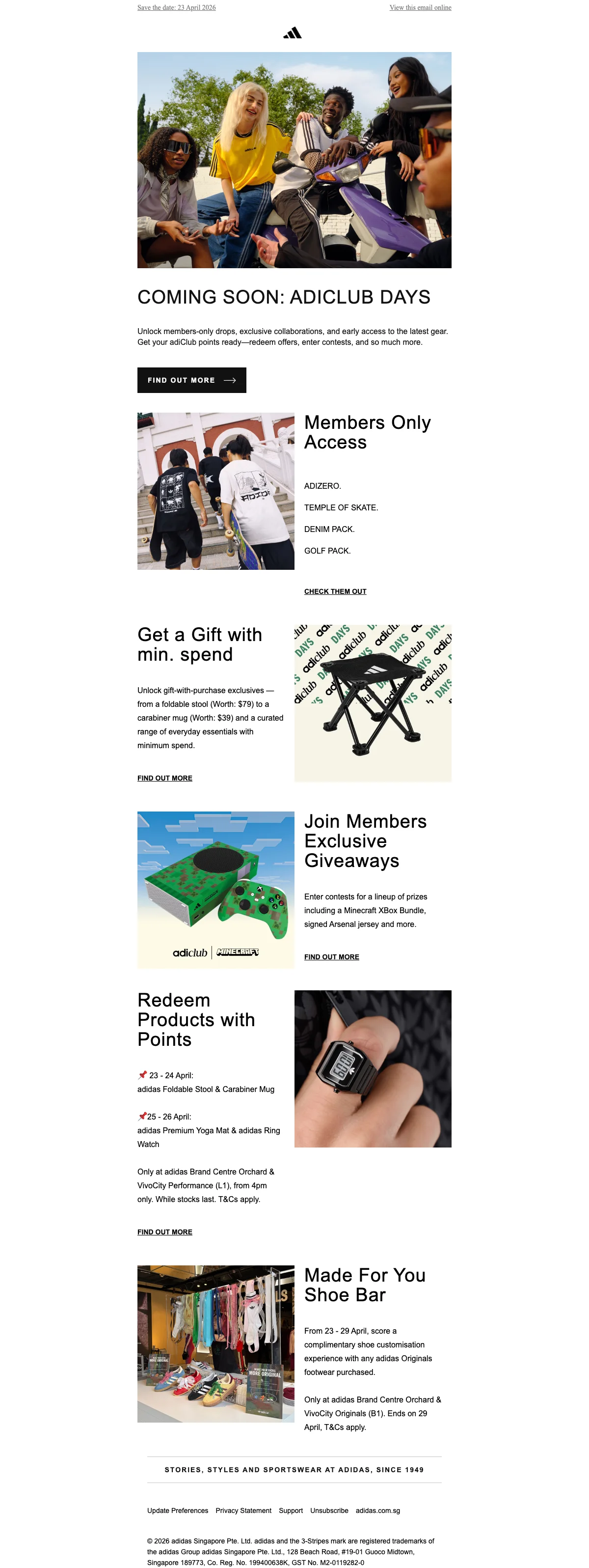 Enjoy uninterrupted music with Spotify Premium by redeeming just 250 adiClub points. Whether you're at home, in the gym, or on the go, this offer lets you listen to more of what you love. Don't miss out on this chance to get 3 months of premium access!