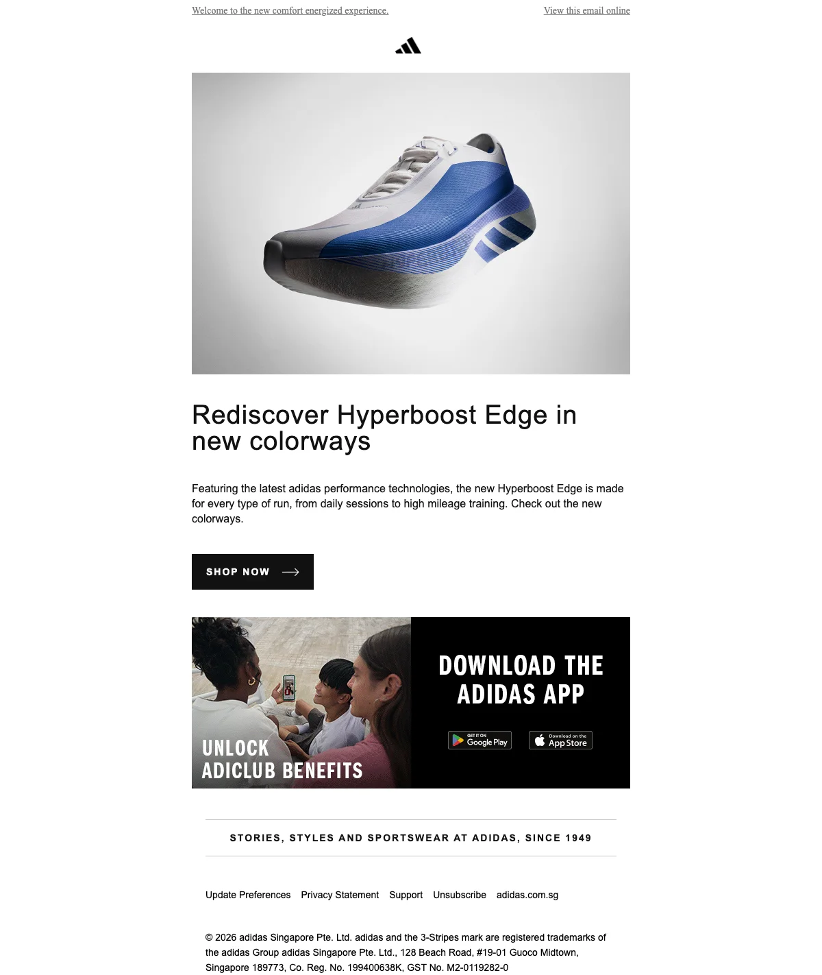 Adidas is a well-known multinational corporation that designs and manufactures shoes, clothing, and accessories. The company is headquartered in Herzogenaurach, Germany and has a global presence, including in Singapore. Adidas Singapore offers a wide range of products, including sportswear, sneakers, running shoes, training gear, and more. The brand is known for its high-quality products that are both functional and stylish, and many athletes and fitness enthusiasts trust Adidas to provide them with the gear they need to perform at their best. Adidas has a strong focus on sustainability and has implemented various initiatives to reduce its environmental impact. The brand uses recycled materials in its products and is committed to reducing waste and carbon emissions throughout its supply chain.
