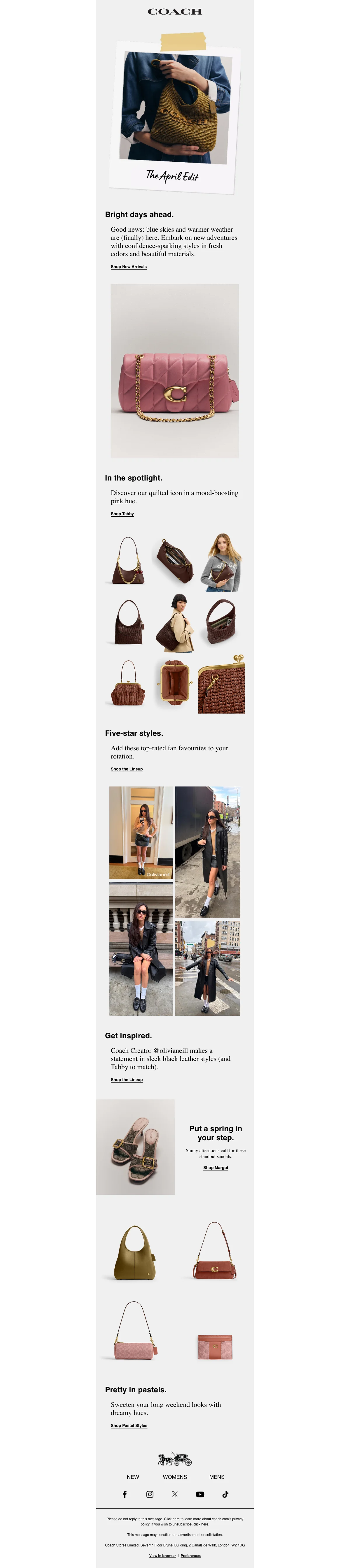Whether you gravitate towards streamlined luxury or are a lover of bold accents and whimsical designs, Coach designs are adored by women and men worldwide for its innate ability to cater to a colourful landscape of tastes. With designs inspired by nature, the American wilderness, history, travel, the vibrancy of modern cities and so much more, the brand is constantly evolving and yet, still remains true to its heritage and dedication to offering impeccable craftsmanship.